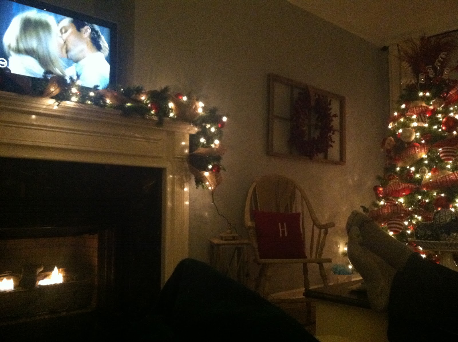 This was the other night. We had our first fire and snuggled up watching The Holiday.